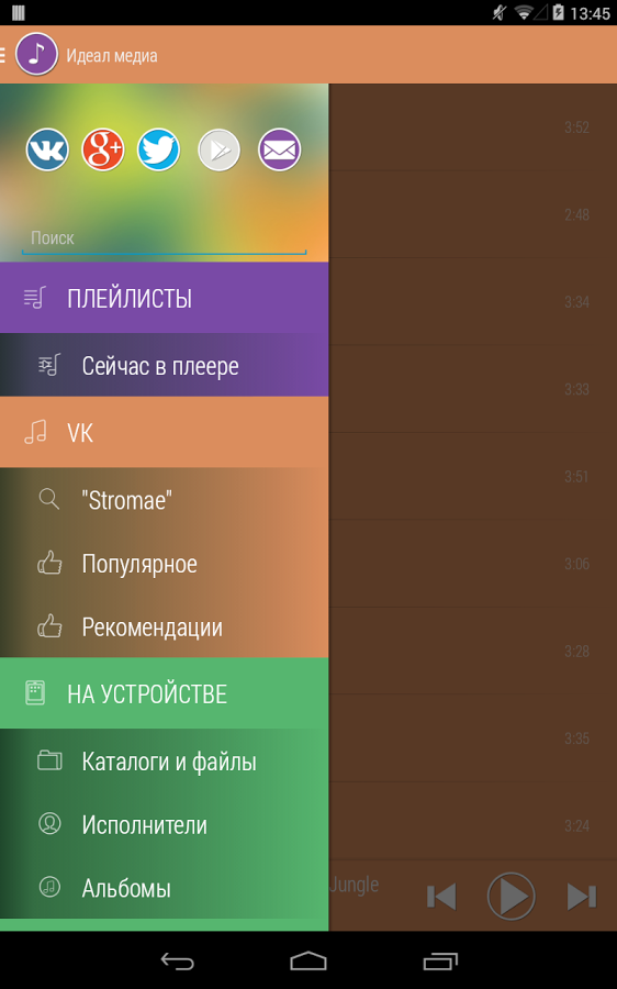 - Встроенный поиск позволит найти даже забытые треки на устройстве