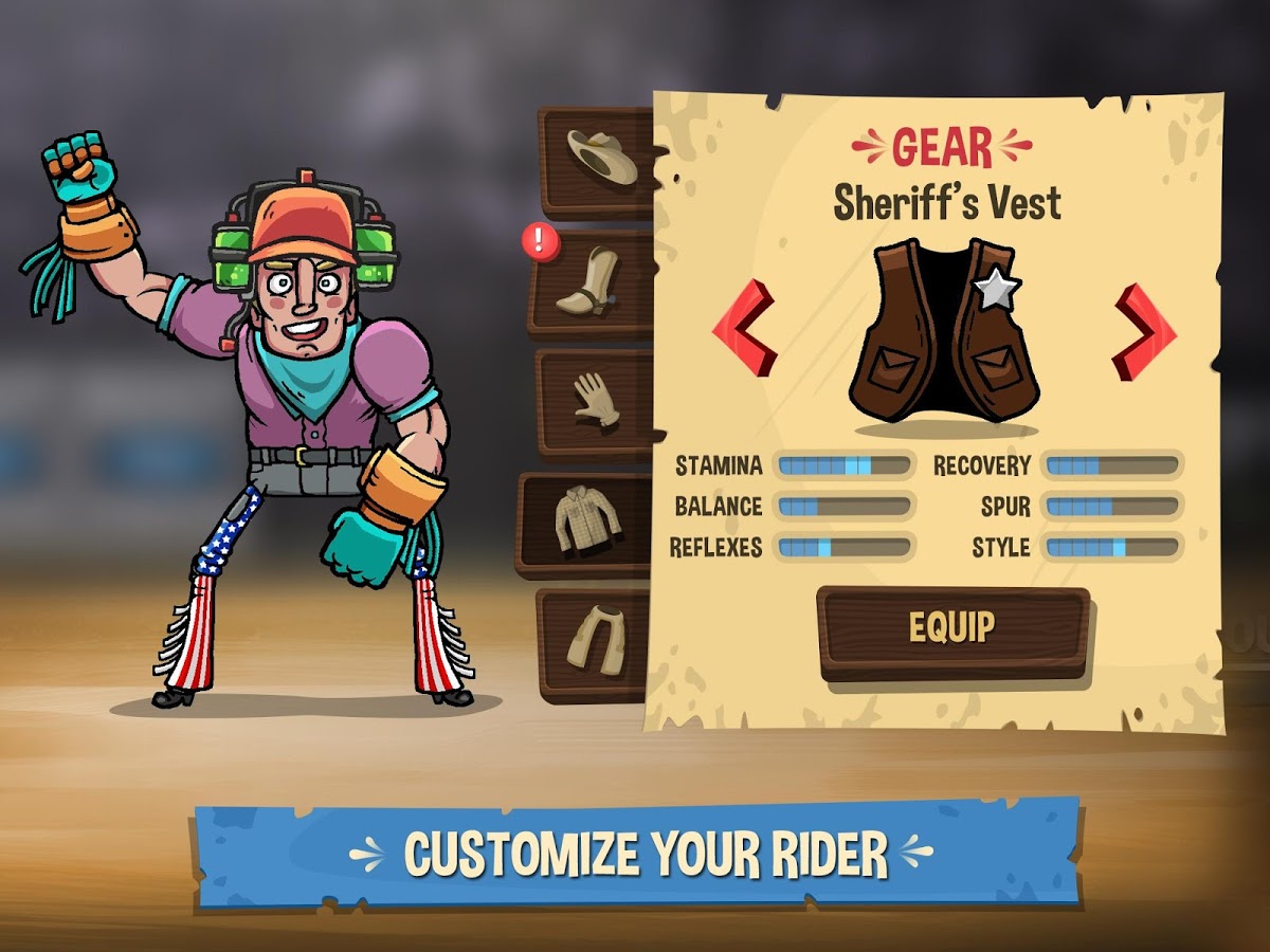 Выберете себе героя и садитесь на быка, но держитесь крепко, вас ждут 8 секунд веселья, и огромных прыжков, пока бык будет пытаться вас сбросить со своей спины. Играйте и зарабатывайте очки, благодаря которым вы сможет попасть в Лас-Вегас на финал чемпионата PBR. Начните свою карьеру прямо сейчас и дойдите до финала получив уйму наград.