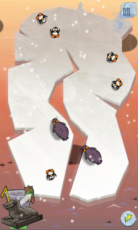 Вам предстоит нарезать лед до минимального размера. При этом необходимо чтобы все пингвины остались на этом кусочке льда. Лед с каждым уровнем изменяется также как и обитатели на нем.
