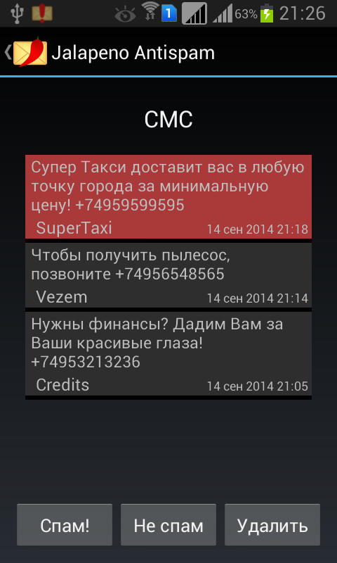 Хорошая, простая и удобная программа от разработчика Jalapeno Technologies для защиты от sms-спама. Имеет быстрый доступ, удобный интерфейс, работает в соответствии с заявленными возможностями.
