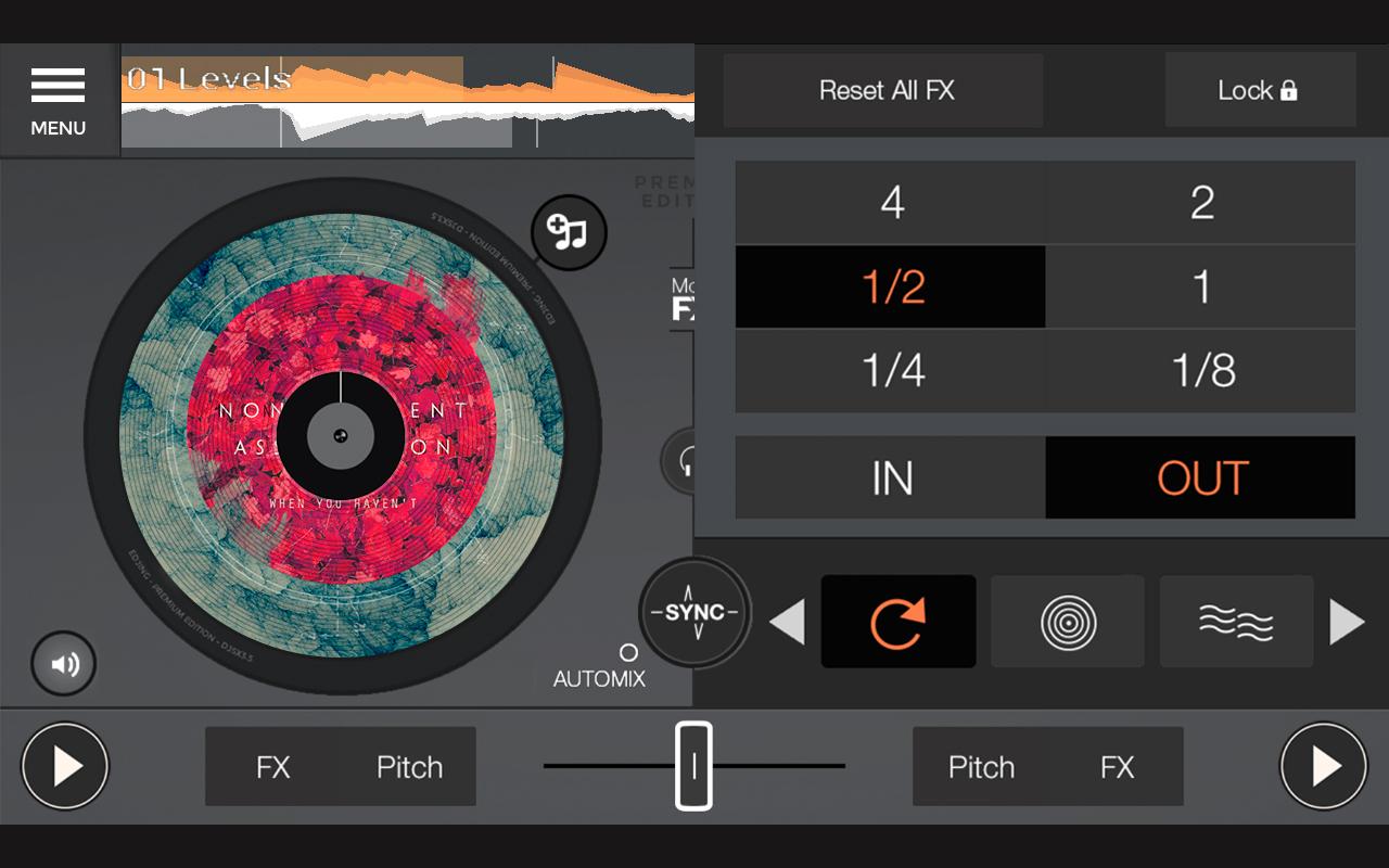 - Уникальные особенности edjing PRO: Pre Cueing и фильтр TK в комплекте с приложением