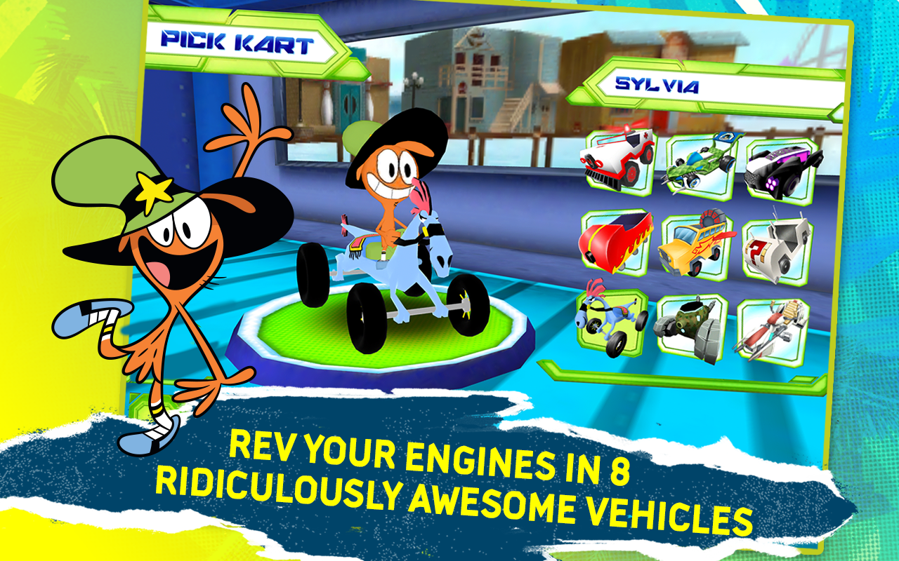 Ваш ждут веселые гонки в стиле старых приставочных игр. В режиме прохождения вас ждет интересный чемпионат, который насчитывать около сорока треков. Все эти гонки будут проходить в пяти различных мирах. Выберите себе героя, возьмите его тачку, и вперед на трек к победе!
