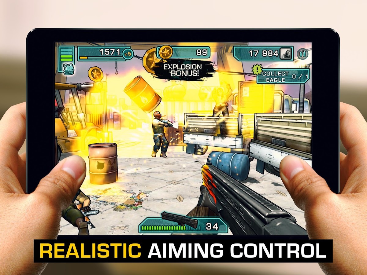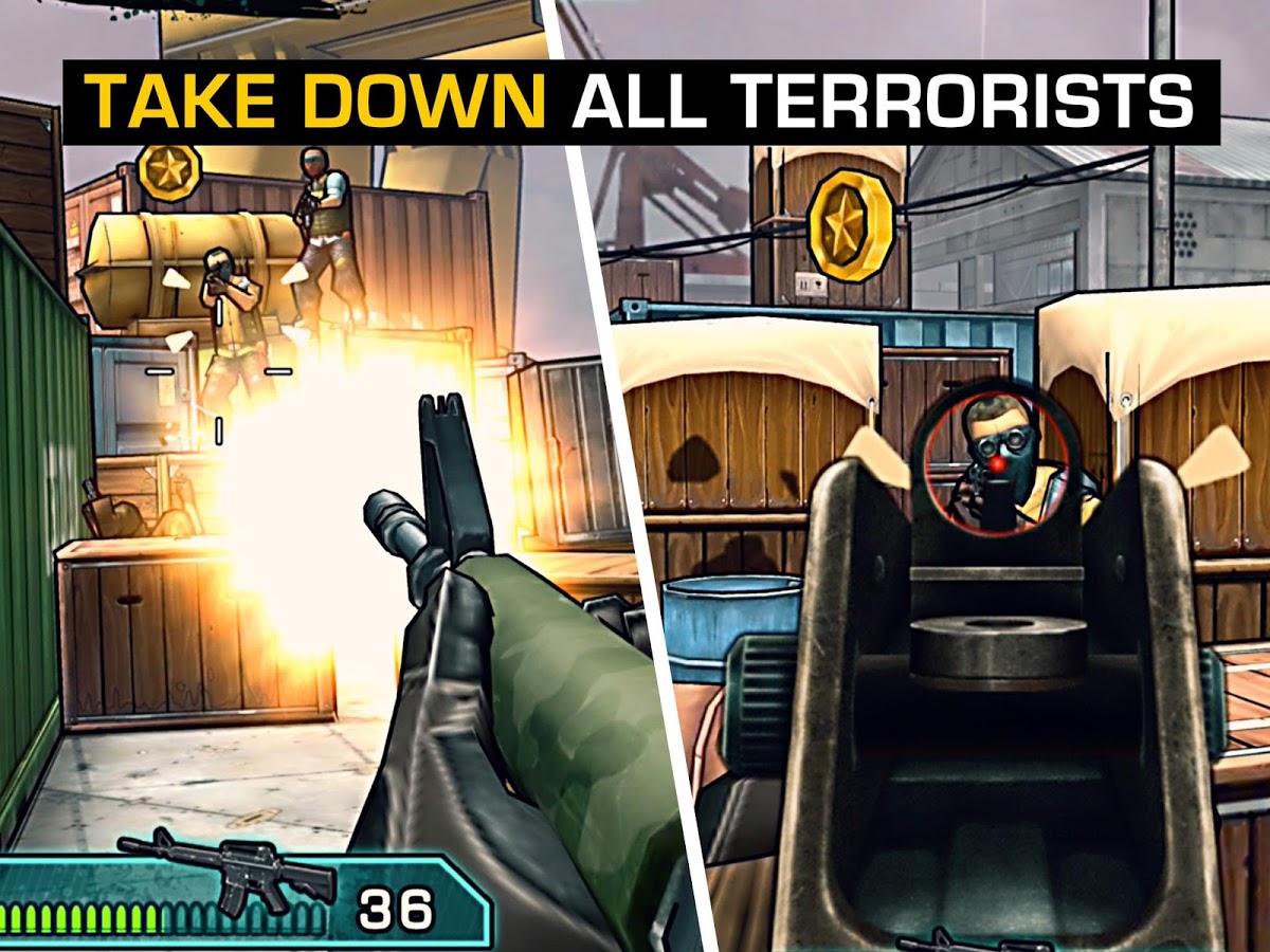 Аркадный шутер на андроид, где вам предстоит сражаться с террористами. Террористы захватили военную базу и теперь вам необходимо взять в руки оружие и вести неравный бой с врагом. Для этого используйте мощное оружие, а также обновляйте его для лучших результатов. Проходите разнообразные миссии и соревнуйтесь со своими друзьями, чтобы стать лучшим игроком в этой игре.