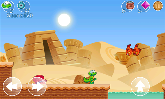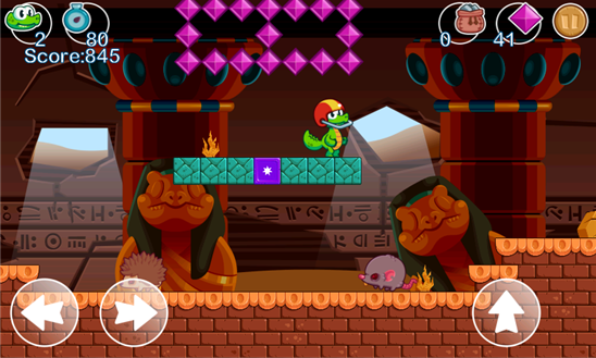 Бегаем, прыгаем и уворачиваемся от бесконечных врагов, а также не забываем собирать драгоценные камни и дополнительные бонусы в виде шлема. За каждые 100 собранных алмазов вы будет получать дополнительные жизни. Эта игра порадует вас отличной яркой графикой и 4 различными темами, а также 60 забавными уровнями и многочисленными и разнообразными врагами.