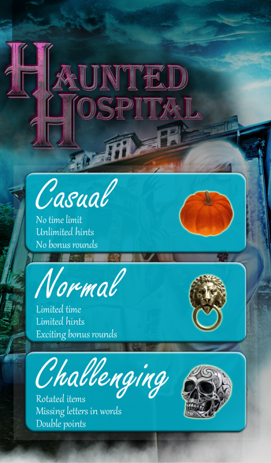 У вас будет возможность побродить по жуткому госпиталю и разгадать загадку: почему он был заброшен и что там все-таки произошло. Для этого у вас будет 20 уровней для этого «приятного» путешествия, но несмотря на жуткость и страх, вам будет очень интересно. Вас ждут 3 различных режимов игры, 4 способа поиска предметов, режим обучения. Удачи и будьте настороже! Следите за привидениями!