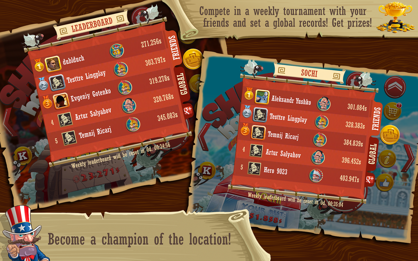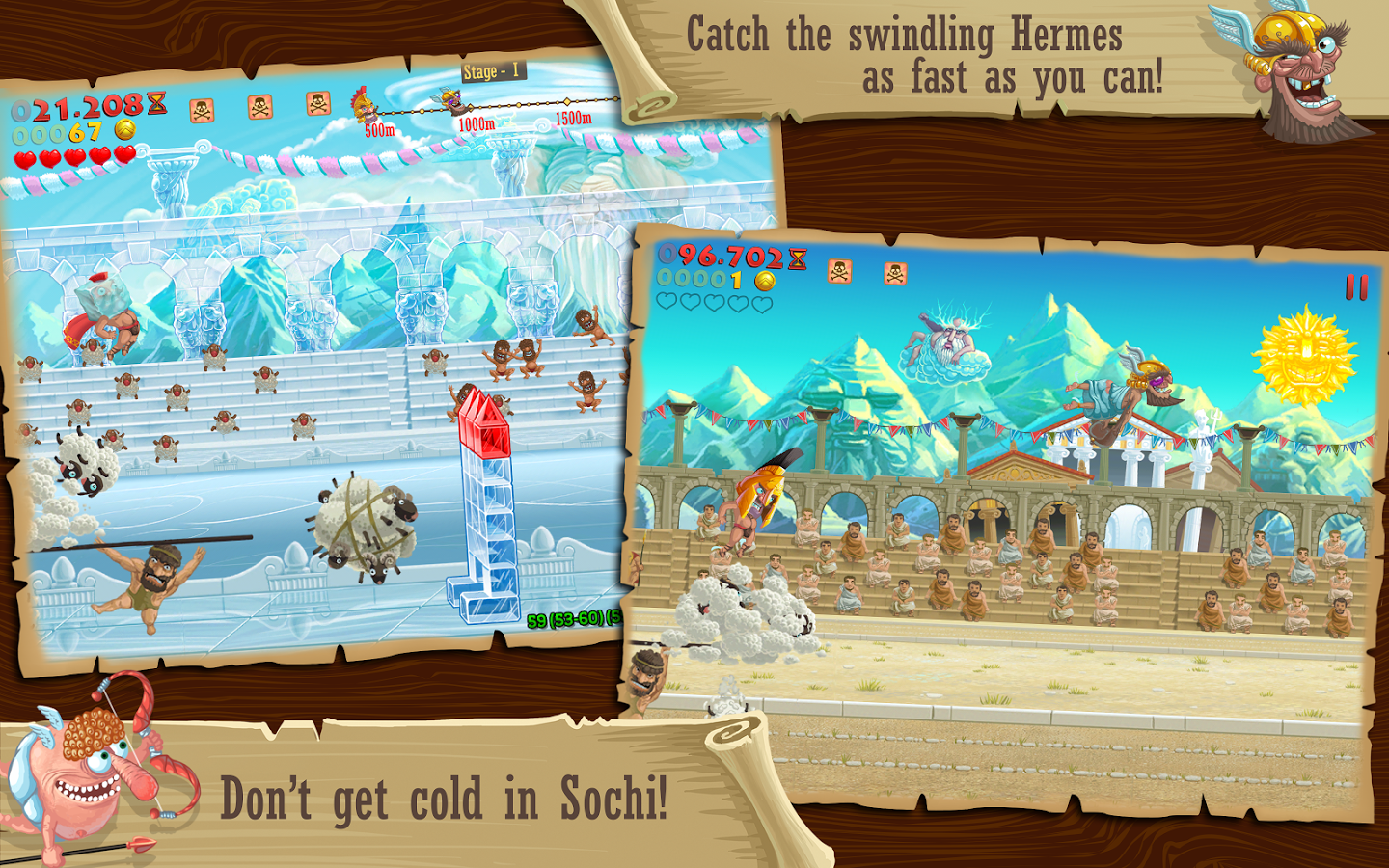 Вы будете управлять Гермесом который пытается прибежать к финишу первым. Для этого вам предстоит маневрировать вокруг других бегунов, преодолевать препятствия и летать на овцах. Собирайте монетки, чтобы приобрести на них новые снасти и модные шляпы с разными способностями. Играйте с друзьями в эту увлекательную игру и добивайтесь лучших результатов.
