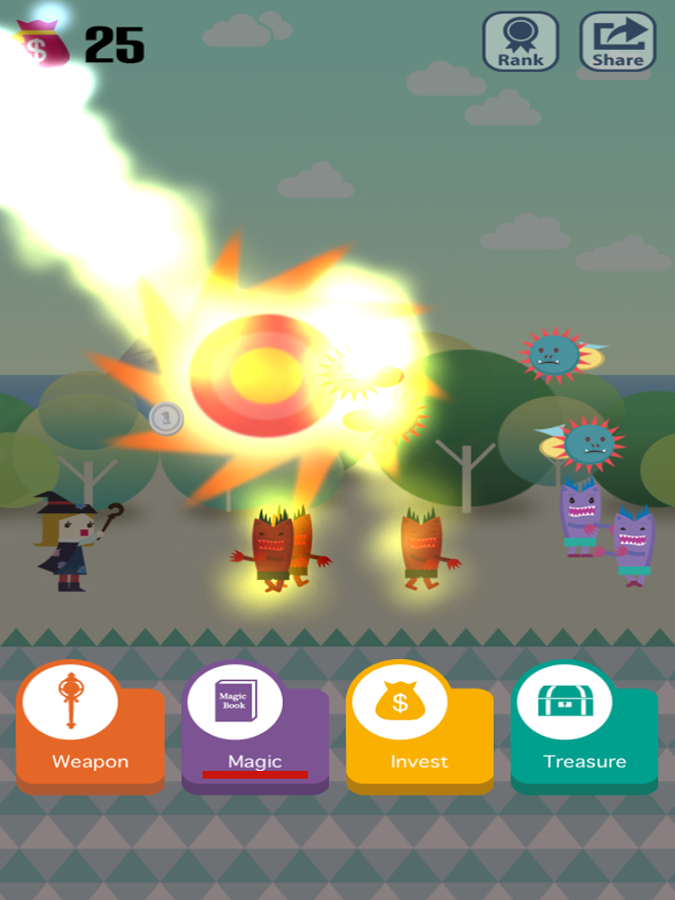 Вы будете путешествовать по миру и убивать монстров с помощью магии и меча. Самая простая игра из этого жанра, применяйте различные магические действия такие как: огонь, лед, гром, смерть и вызов дракона для того чтобы побороть монстров. Сражайтесь с мощными боссами и зарабатывайте монетки для покупки дополнительных бонусов и улучшений.