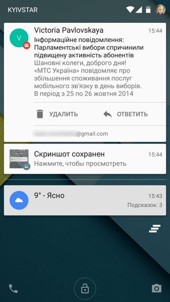 Экран блокировки в Android 5.0 претерпел изменения. Теперь на него вводятся уведомления, есть доступ к быстрым настройкам. Вам не потребуется разблокировать экран для просмотра входящего письма или отключения Wi-Fi.