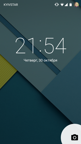 В правом и левом углу отображаются иконки камеры и телефона, и если потянуть их - запустится соответствующее приложение.