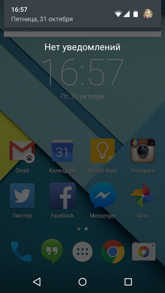 Основной экран в в Android 5.0 не претерпел кардинальных изменений. Вы по-прежнему можете создавать неограниченное количество рабочих столов. Изменения затронули лишь иконки приложений: изменился их внешний вид и анимация.