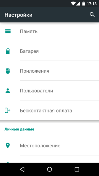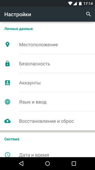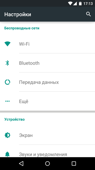 Меню настроек в Android 5.0 не претерпел кардинальных изменений, а получил лишь значительный редизайн.