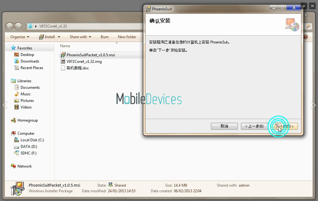 1. Скачайте из вложений к данному сообщению архив с PhoenixSuit и установите утилиту. Так же утилита часто уже включена в архив с прошивкой для вашего устройства. Установка программы проходит на китайском языке, но не пугайтесь, просто нажимайте кнопку "Дальше", которая расположена в правом нижнем углу окна установщика. Так же в процессе установки вам будет предложено установить драйвера, согласитесь на установку.