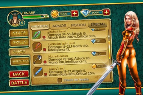 - Экипировка вашего персонажа может быть и с другой брони, оружия и магических зелий из магазина.