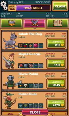Играть в Tapventures очень просто, ткните пальцем в вашего противника .... и он атакован. Вот видите, ни чего страшного. А когда вы добьёте своего оппонента, из него выпадут золотые монетки. На них вы можете прокачать своего персонажа или нанять себе помошников, которое будут сражаться и приносить вам доход даже когда вы не играете.
