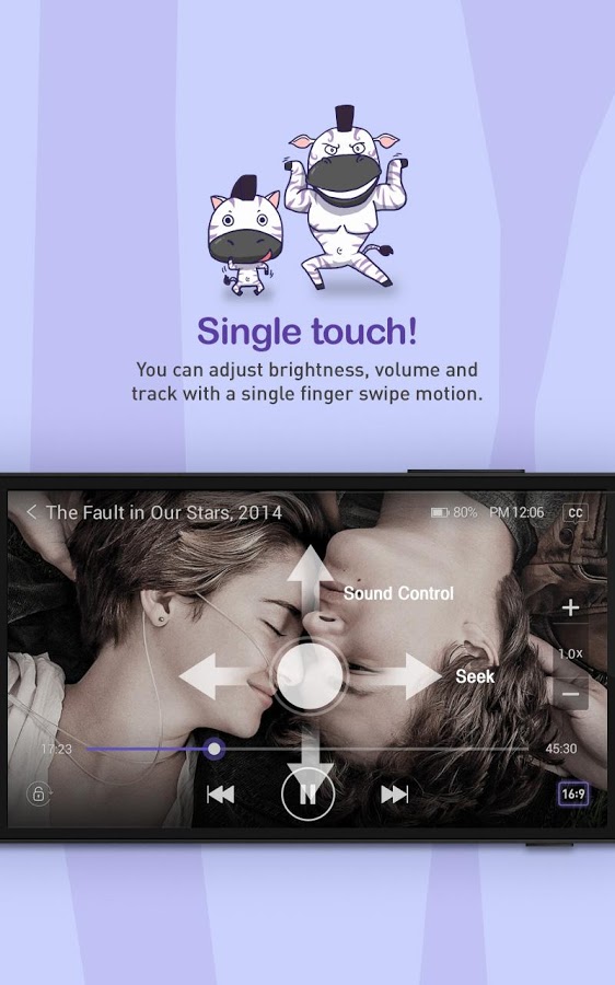 Мобильное приложение KMPlayer поддерживает функцию жестов для быстрого воспроизведения видео и настройки звука.