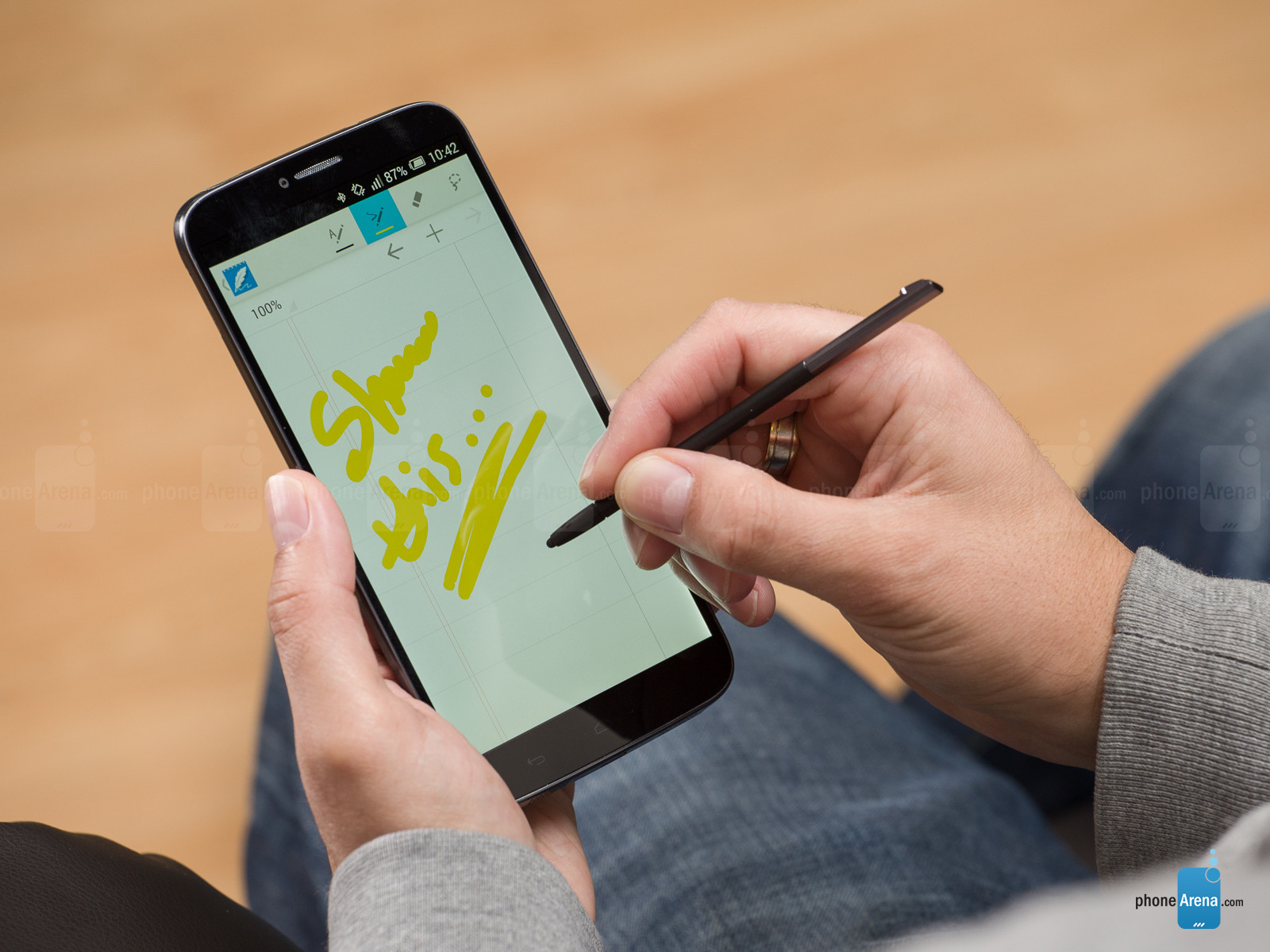 Как уже говорилось ранее, производитель наградил устройство функцией рукописного ввода. Работает она гораздо хуже, чем в Galaxy Note. Экран иногда «забывает» реагировать на стилус, поэтому приходится рисовать символ заново. Вдобавок, фаблет не блокирует ручной ввод при работе со стилусом, то есть случайное прикосновение руки к экрану прервет процесс письма.