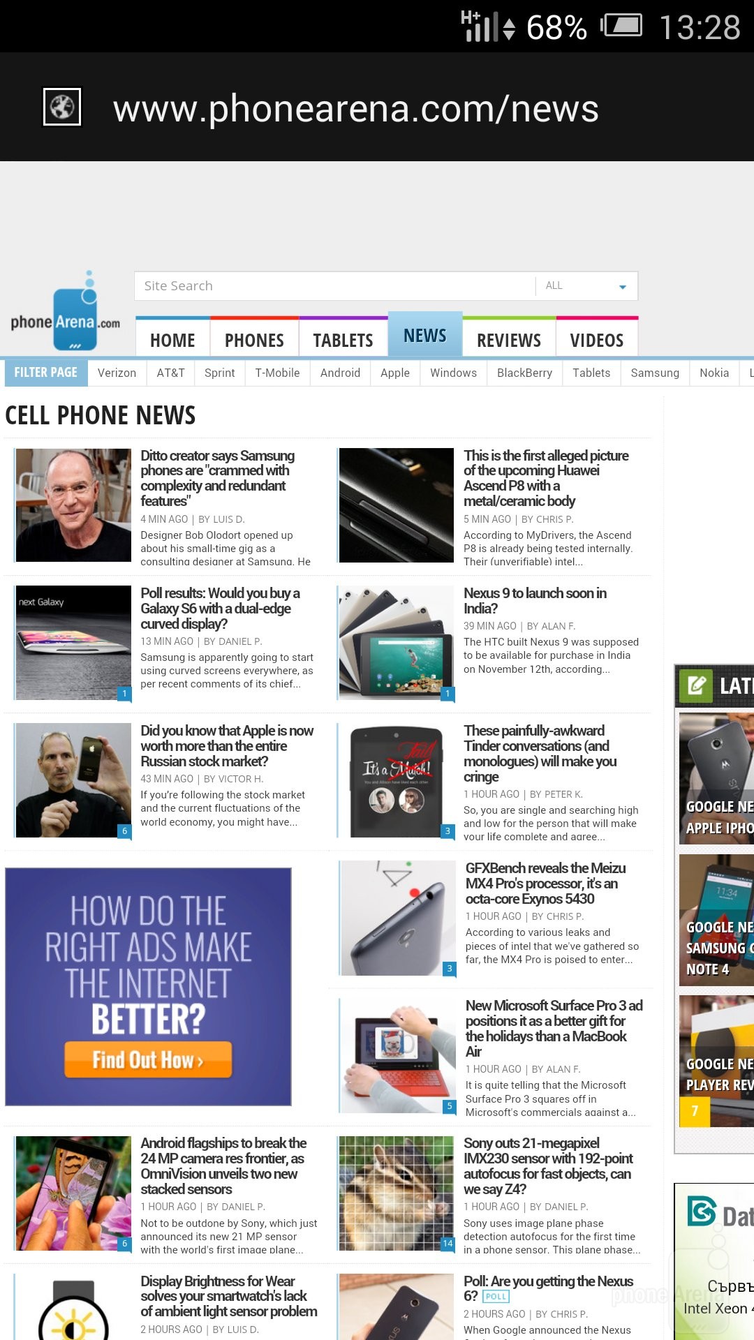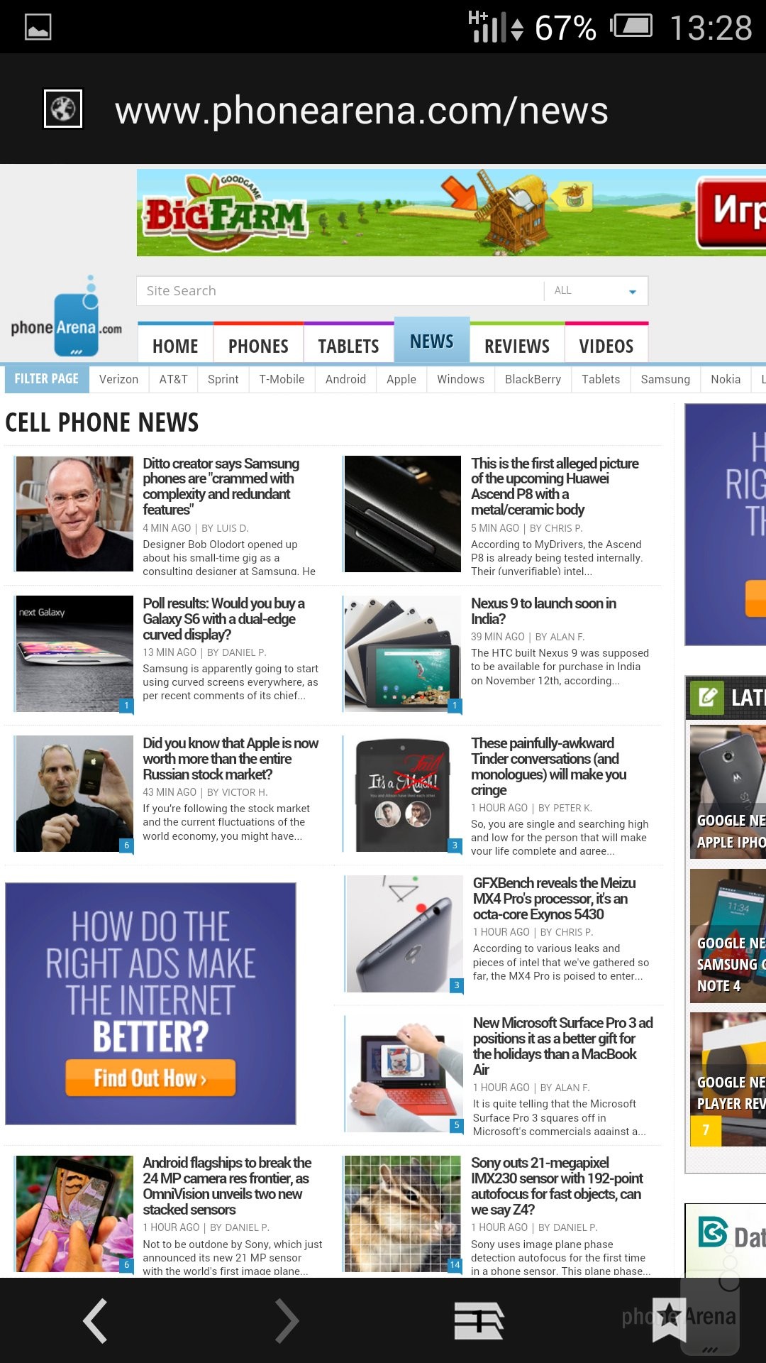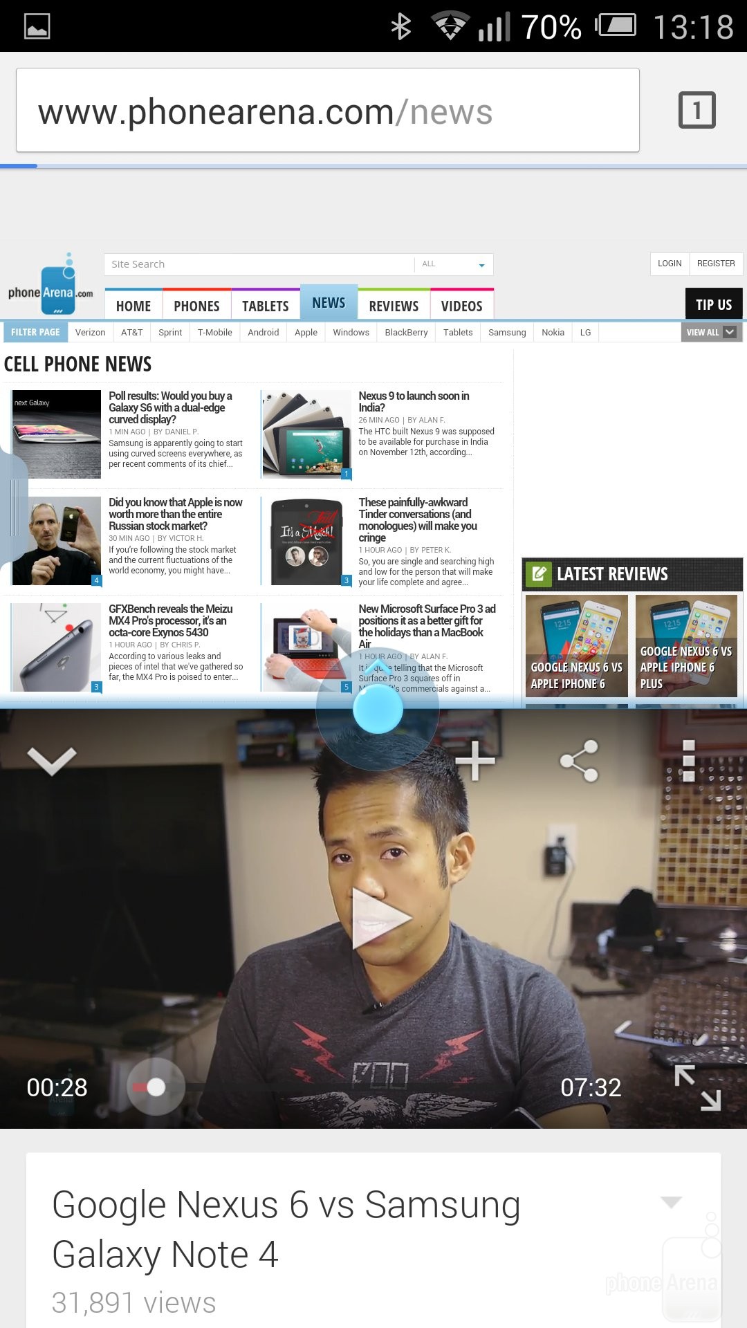 Сторонний браузер спустя некоторое время после запуска перестал работать. Причина тому – плохая оптимизация системы под работу приложений. Хотя листая вебстраницы через Google Chrome, устройство вело себя хорошо.Интернет-серфинг на 6-дюймовом экране недостаточно удобен ввиду ужасно оптимизированной работы системы.