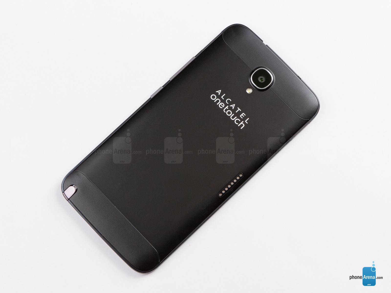 OneTouch Hero 2 практически не отличается по внешнему виду лицевой части от предыдущей версии устройства, за исключением некоторых мелочей. Обрамление стало чуточку толще, фронтальную камеру немного сместили. В целом внешне они очень схожи: закругленные углы, вверху экрана расположились разговорный динамик, датчик приближения и фронтальная камера. Три навигационные кнопки находятся внизу экрана.Внешний вид Hero 2 перенял у своего прошлогоднего предшественника. Лицевая сторона полностью покрыта стеклом, задняя крышка – пластик с металлической окантовкой.