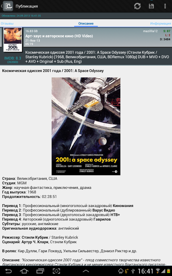 Обратите внимание, что это лишь клиент по работе с поиском. Сам контент приложение не загружает, а лишь скачивает торрент-файлы.