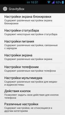 8. Запускаем GravityBox из списка приложений и выбираем те опции, которые нам нужны
