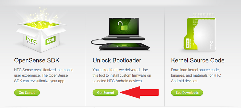 4. После того как вы зарегистрировались и вошли в свой аккаунт, на главной странице войдите в Developer Center и выберите Unlock Bootloader, нажав кнопку Get Started.