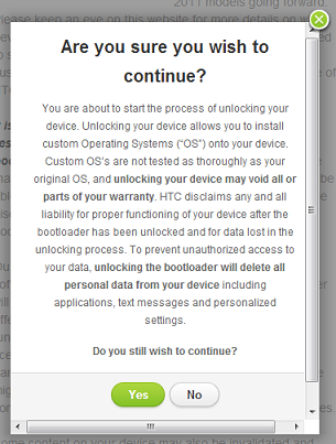 20. После нажатия исполения команды в предыдущем пункте код разблокировки будет отправлен на ваш HTC One и в этот момент на экране вашего устройстве должно появиться сообщение с которым надо согласиться. Выберите с помощью кнопок звука (вверх, вниз) Yes и нажмите кнопку питания для выбора. Все bootloader разблокирован.