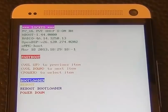 3. Теперь нам снова надо загрузить наш HTC One в режиме fastboot, точно так же как и в пункте 8 по разблокировке.