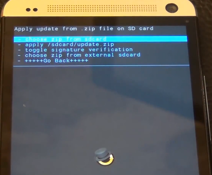 12. В новом меню используйте кнопки регулировки громкости для навигации и кнопку питания для выбора. Выберите пункт Install zip from sdcard.