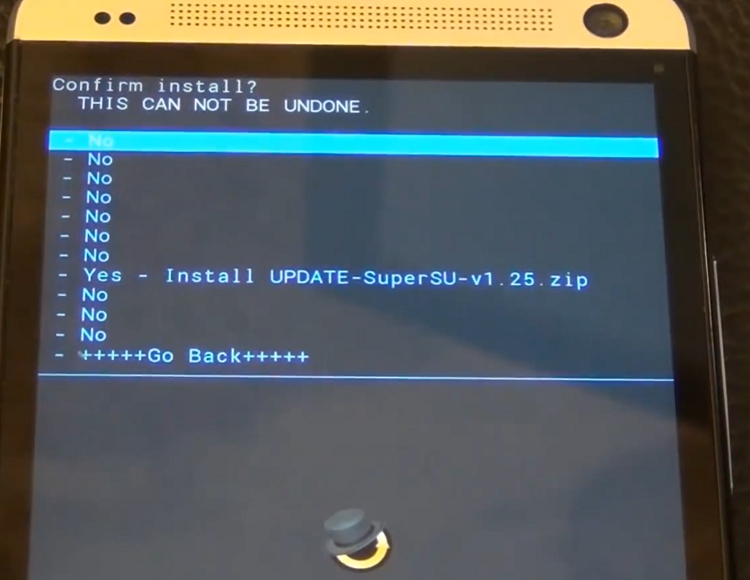 15. В следующем меню выберите Yes - Install UPDATE-SuperSU-v1.65.zip и нажмите питание. Начнется процесс установки, телефон перезагрузится.