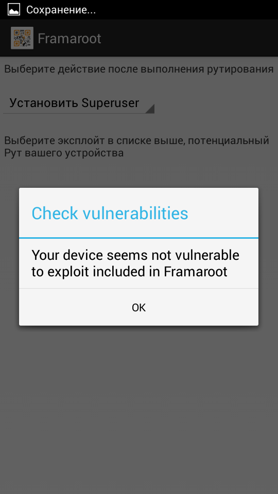 а постой, на него нет китката вроде, попробуй сделать сброс настроек, затем запустить Framaroot снова, ещё как вариант попробуй использовать другую версию Framaroot, ты какой версией пробовал рутануть? да и сверху вместо Superuser выбери SuperSU в фрамарут, эксплоит для тебя должен быть рабочим Barahir