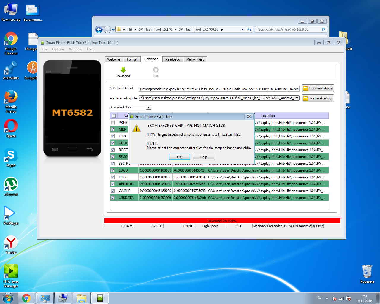 1. Первым делом скачиваем из вложений архив USB VCOM Driver.rar, распаковываем его и устанавливаем данные драйвера по этой инструкции (через диспетчер устройств): Как устанавливать USB VCOM драйвера для прошивки устройств на чипсете MT65xx через SP Flash Tool 2. Дальше скачиваем прошивку и распаковываем её в отдельную папку в корень любого из дисков вашего ПК. В названии папки в которой расположена прошивки не должно быть кириллических символов или иероглифов, только англ буквы, пробелов тоже не должно быть 3. Скачиваем программу для прошивки Flash_tool_3.20.zip, распаковываем архив и запускаем оттуда Flash_tool.exe (на правах администратора). 4. Появляется окно программы, нажимаем на кнопку Scatter-loading и в появившемся окне обзора выбираем файл MT6572_Android_scatter.txt, который находится в папке с прошивкой (куда вы всё распаковали) 5. Убираем флажок напротив пункта PRELOADER и ставим флажок напротив Options -> USB Mode 6. Убеждаемся что телефон отключён от компьютера и нажимаем в окне Flash Tool кнопку Download, для того чтобы программа перешла в режим ожидания. На предупреждение "Not ALL images are correctly loaded, which may cause boot loop issue! Do you still want to go on downloading anyway?", нажимаем Да 7. Выключаем телефон полностью, вытаскиваем батарейку, но не включаем его, и в таком выключенном состоянии подключаем к компьютеру. Если всё было сделано верно, начнётся прошивка смартфона, после окончания вылезет небольшое окошко с зелёным кружком, значит прошивка окончена. Отключите телефон от ПК, вытащите батарею еще раз, а затем включите смартфон как обычно (первая загрузка после прошивки может длиться довольно долго, до 5 минут).