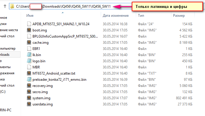 1. Сперва скачиваем архив с прошивкой для SP Flash Tool, именно для Flash Tool, а не для рекавери для установки с карты памяти, такую прошивку нельзя установить с компьютера. Распаковываем архив с прошивкой. Папка в которой содержится прошивка не должна иметь в своём названии и пути расположения русских букв, можно только англ. буквы или цифры