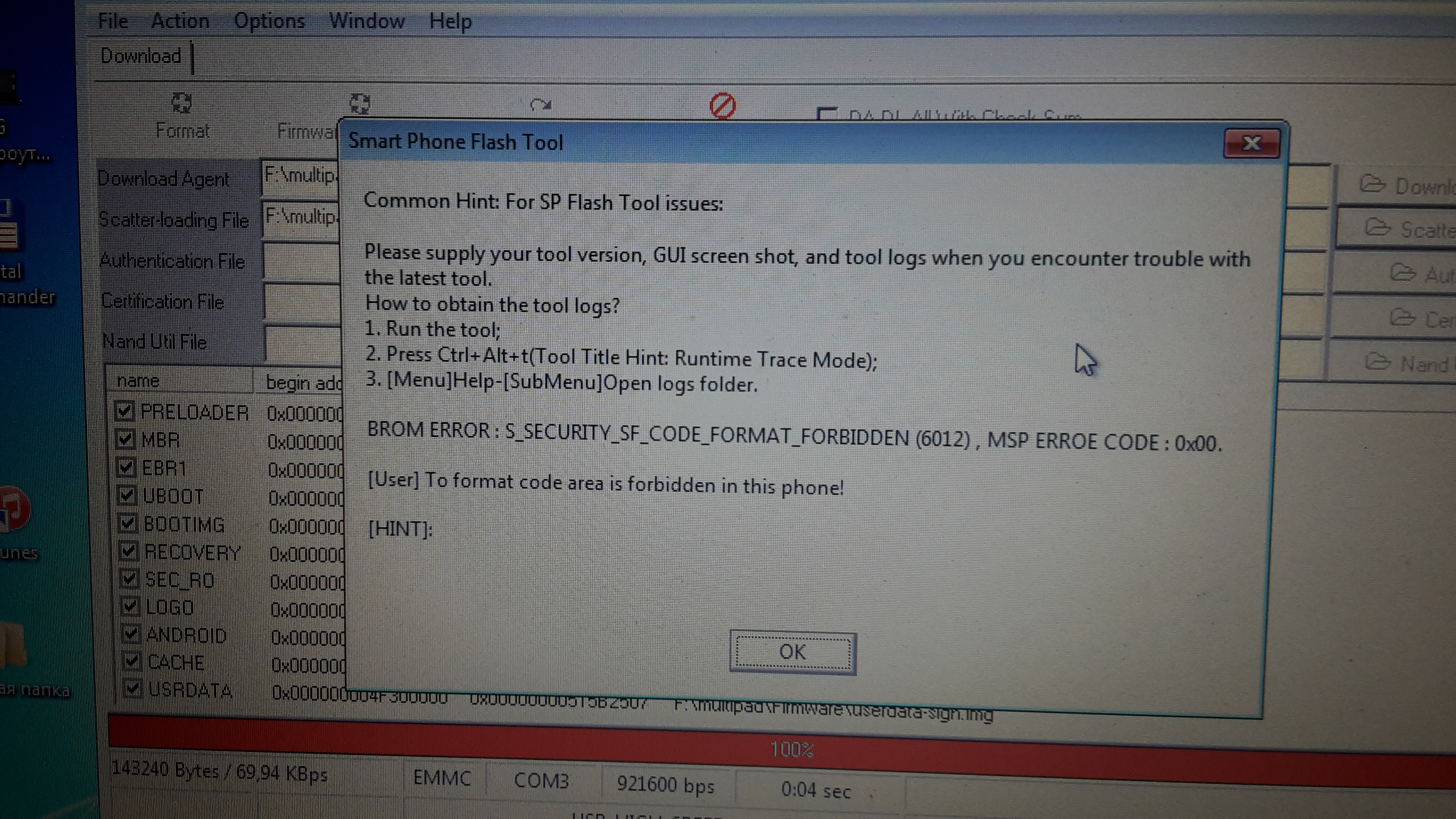 пробовал 3 версии , что в комплекте , так же 5 версии. агент mtk_alllnOne_DA и DA_SWSEC