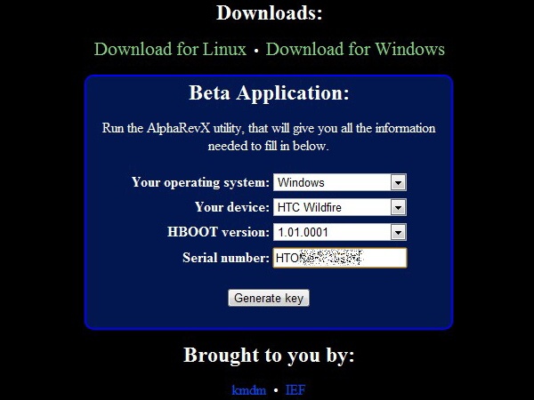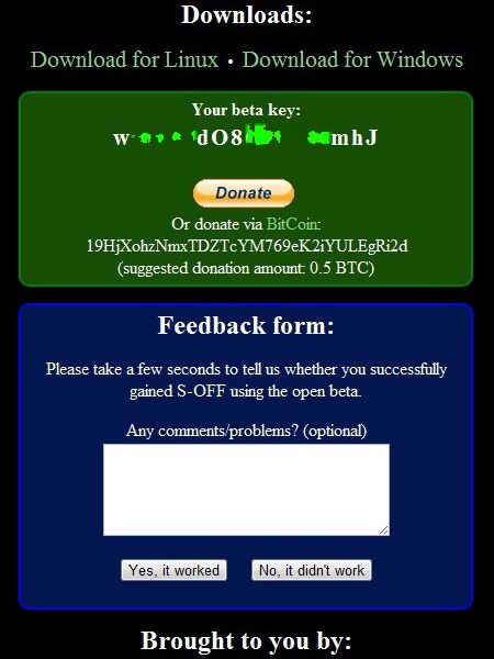 Теперь. введите эти данные на сайте http://revolutionary.io/, там где вы скачали архив revolutionary (окно программы не закрывать) и нажмите Generate key