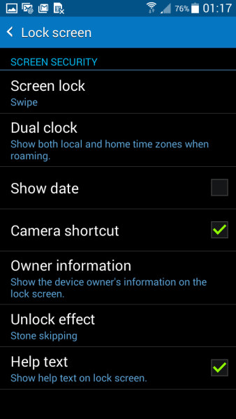 Экран блокировки стандартный – обыкновенный экран, показывающий время, с ярлыком приложения камеры внизу, который можно отключить. Варианты для разблокировки экрана также обычные – рисунок, свайп, PIN и пароль.