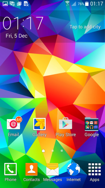 Главный экран также имеет интерфейс TouchWiz с 4 иконками. Всего Вы можете иметь до 5 рабочих столов и упорядочивать панели как пожелаете.