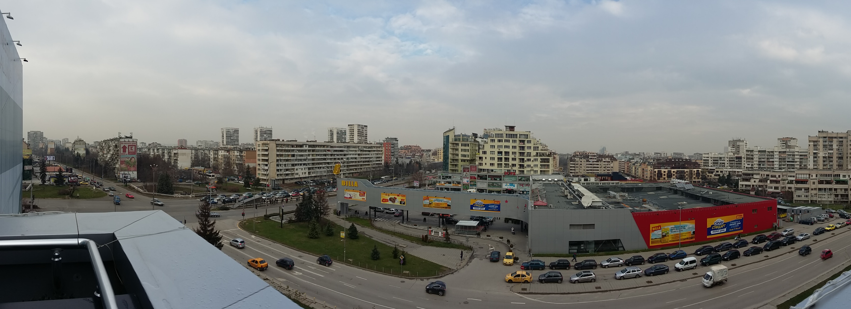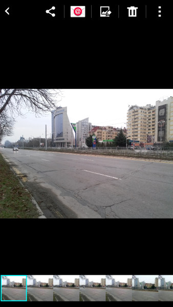 Панорамные 1200px снимки получаются отличными, процесс съемки обычный, проходит гладко и не подтормаживает. Качество изображения достаточно хорошее. На снимке ниже представлен пример панорамного снимка. Сшито немного коряво в основном только вокруг движущихся автомобилей, а в целом очень даже неплохо.