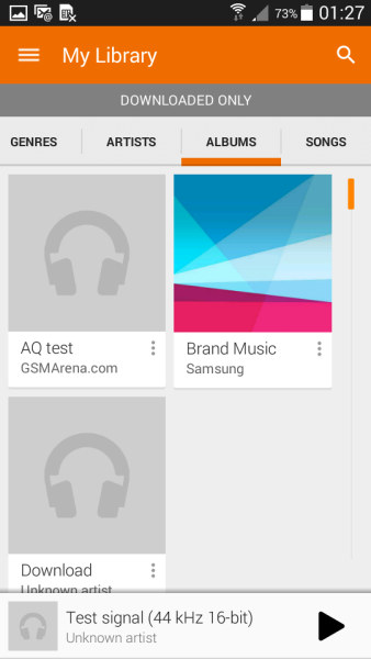 Дисконт-версию TouchWiz сопровождает и музыкальный плеер – фирменного приложения Samsung здесь нет, только предустановленное приложение Google Play Music. Это прекрасный проигрыватель, который поддерживает как offline, так и online проигрывание Ваших треков.