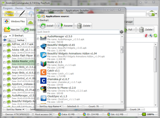 - для программ на Android пакетные установка/удаление/удаление с сохранением данных;