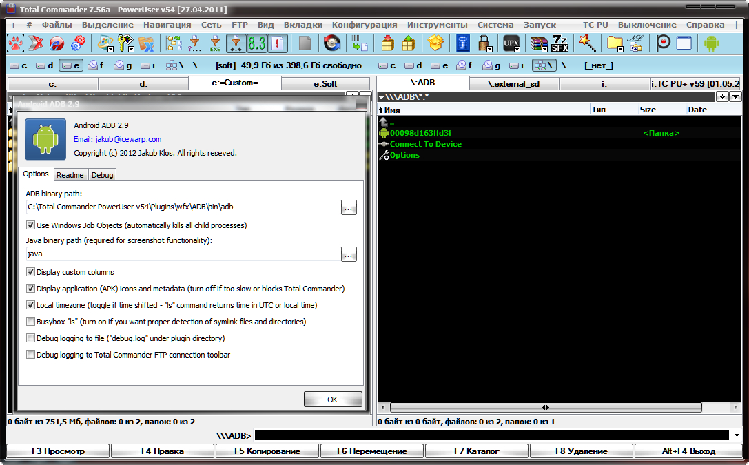 2. Открываем архив mdforum.su_ADBplugin_v3.1.zip прямо в Total Comander, он сразу определит, что это плагин, устанавливаем.