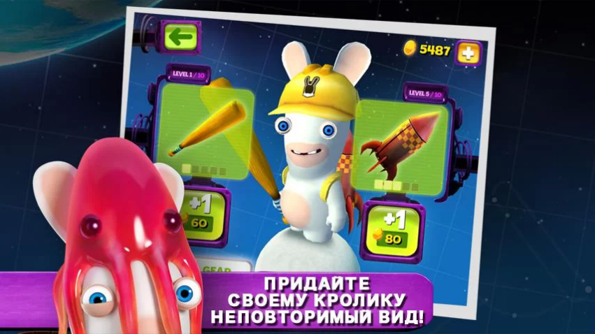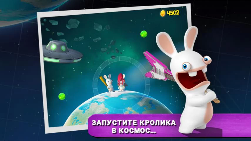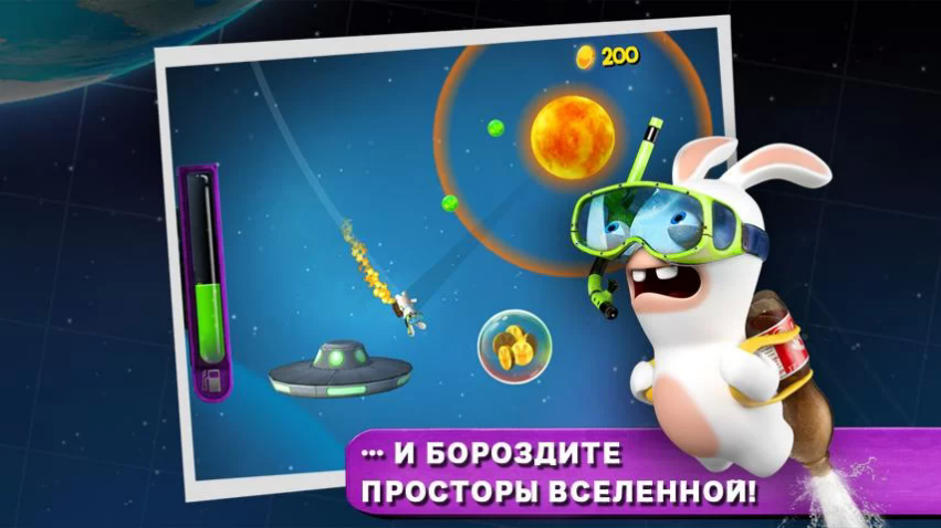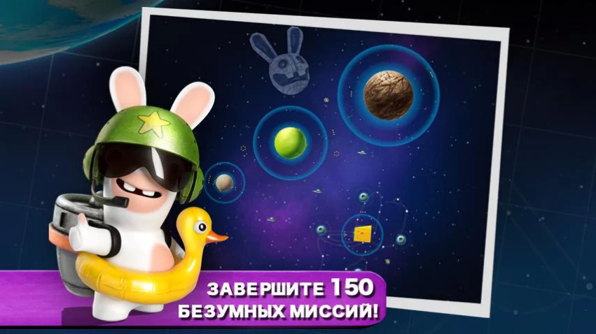 Rabbids Big Bang - аркадная игра, которая предоставит вам возможность всего одним касанием по экрану вашего мобильного устройства управлять кроликом, который ищет приключения в открытом космосе. Вам предстоит исследовать 10 галактик и выполнить 15 различных миссий. Запускайте кролика битой, ускоряйте его с помощью реактивного ранца, собирайте монеты, которые позволят улучшить экипировку вашего подопытного.