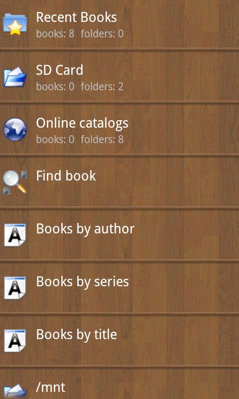 - Встроенный браузер файлов. Удобный список последних книг.