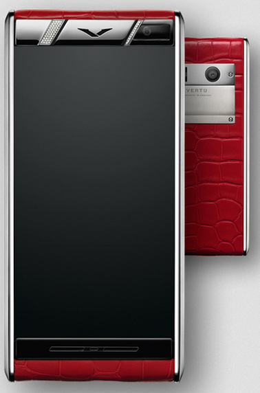 Если Вам больше по душе красный цвет, то Вы можете выбрать Diamonds Red Alligator (на основе Vertu Aster), который вмещает в себя всего 55 бриллиантов общим весом 0,15 карат и не имеет золотых деталей. Цена данного девайса составляет 8900€.