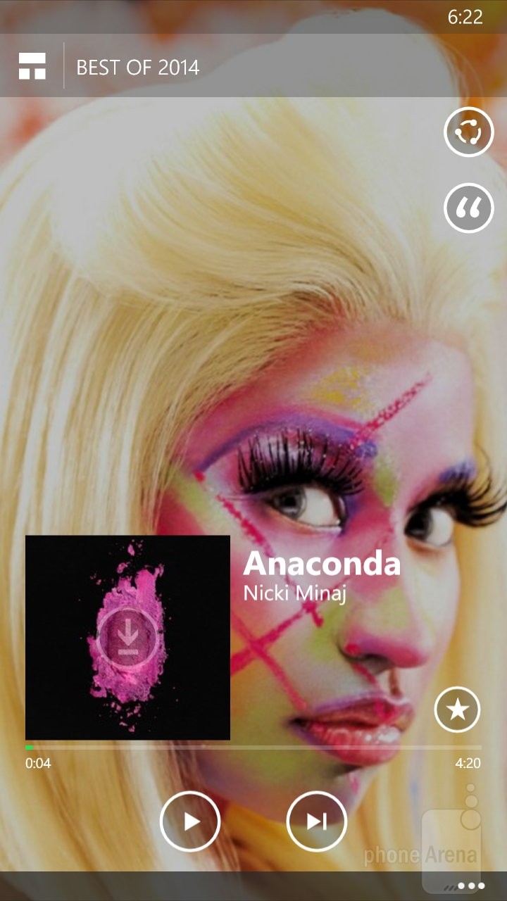 Функциональное приложение MixRadio станет отличным вариантом для наслаждения своими любимыми треками. Также смартфон предлагает стандартное приложение Music от Microsoft, интегрируемое с Xbox Music, где Вы сможете приобрести мелодии. Однако эквалайзер доступен только в меню общих настроек, а не встроен в интерфейс музыкального проигрывателя. Звук, сочащийся из динамиков, довольно громкий и качественный.