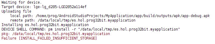 А еще захотелось запустить программу, мною написанную в среде Android Studio, так он не захотел запускать ее. Выхлоп: