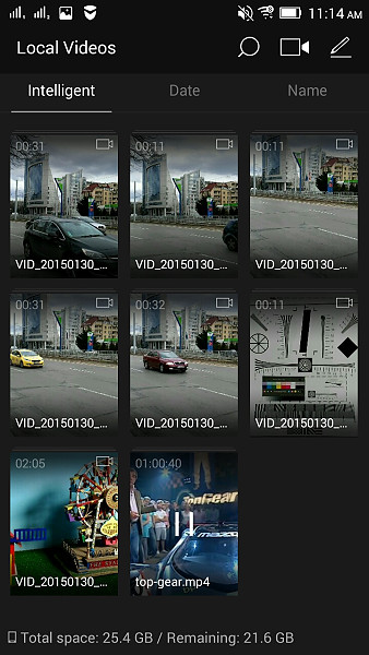 Видеоплеер, надо отметить, очень способный. Он воспроизводит все кодеки, которые мы ему давали, однако он отказался воспроизводить видео с AC3 аудио. Интерфейс видеопроигрывателя значительно лучше, чем Галерея, при этом Вы сможете рассортировать видео как Вам угодно. Редактор видео позволяет склеивать несколько клипов вместе, поддержки субтитров здесь нет.