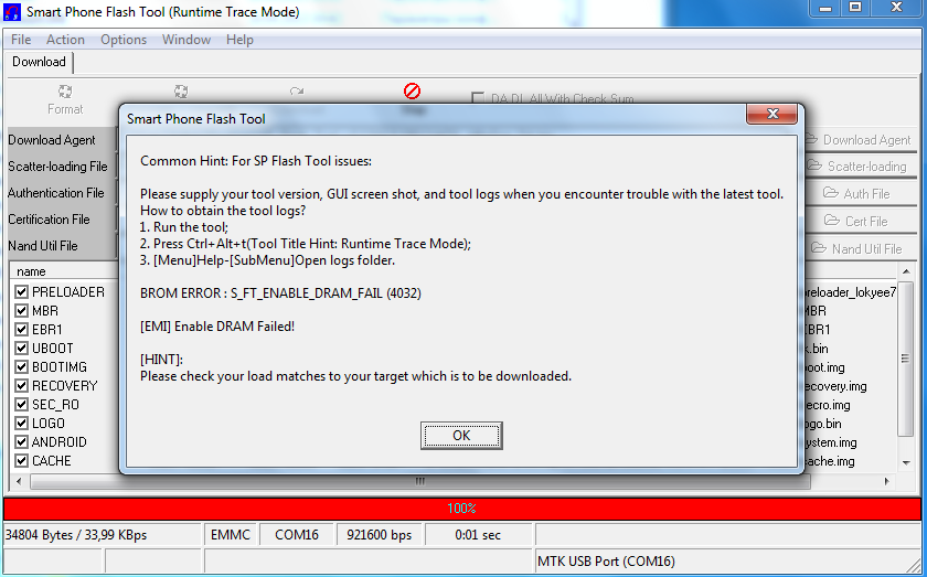 BROM_ERROR: S_FT_ENABLE_DRAM_FAIL (4032)