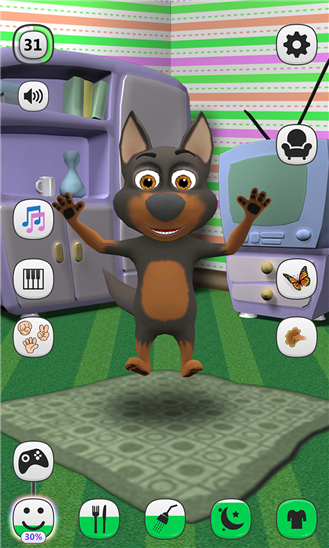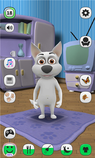 Вы можете играть с этой собакой набирая очки, и тем самым повысить свой уровень. Чем чаще вы будете играть с щенком, тем быстрее будете переходить на следующий уровень. На некоторых уровнях, вы можете получить подарки, в этом вам помогут забавные игры. Кроме того, все помещения оснащены энергетическими уровнями, которые должны заряжаться по истечении времени игры с собаки и заботы о ней.
