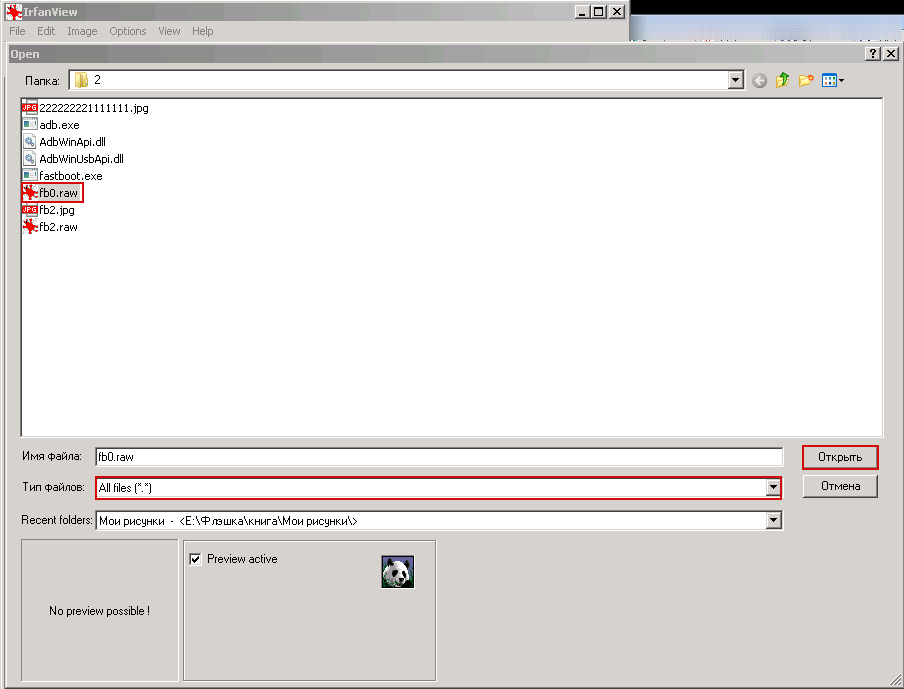 3. После запуска батника появится файл fb0.raw в папке среди других файлов, это и есть скриншот, вот только, чтобы его открыть и с конвертировать в другой формат нужна программа, которая это умеет делать. Я остановился на выборе IrfanView.