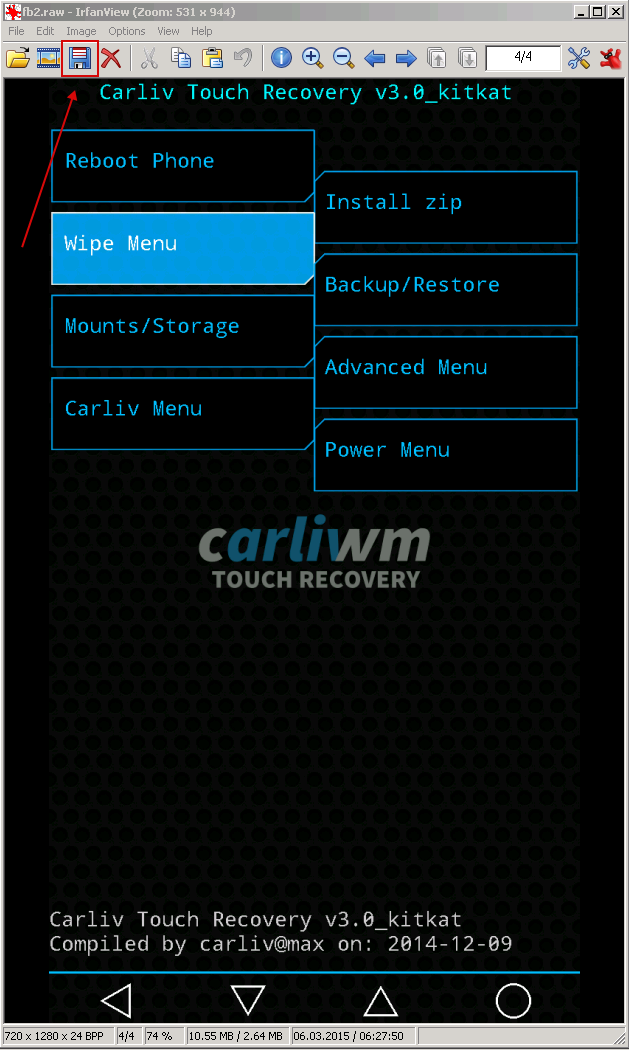 Инструкция как сделать скриншот в recovery в формате raw и потом с конвертировать его в jpg.